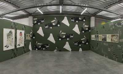 Sie kreiert Innen- und Außenwandgemälde im großen Stil und Arbeiten auf Papier und Leinwänden für Galerien und Museumausstattungen.